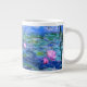 Une tasse de spécialité de nénuphars rose Monet, composée de belles nénuphars roses flottant dans un étang bleu calme avec des nénuphars. Un grand cadeau Monet pour les amateurs d'impressionnisme et d'art français. Impressionnisme nature serein avec de belles fleurs et paysage d'étang pittoresque.