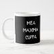 Mea culpa, qui signifie "par ma faute" en latin, vient d'une prière de confession dans l'Église catholique. Disant par lui-même, c'est une exclamation d'excuses ou de remords qui veut dire "C'était de ma faute" ou "Je m'excuse".... Mea culpa est l'un des nombreux termes anglais qui dérivent du latin culpa, qui signifie "culpabilité". Bien sûr, c'est un jeu de mots....Mea Maxima Cuppa — Ma grande tasse.... La Douche des Roses Shoppe porte aussi la petite tasse avec MEA CUPPA!