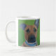 Grande tasse noire peinte de portrait de chien de cabot de bouche avec l'arrière - plan vert clair. Aimez ces oreilles drôles.