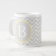 Profitez de votre café en grande quantité avec une Mug Jumbo Monogram Chevron Jaune. Le design de la moquette comprend un motif de chevron gris clair avec un emblème de cercle en jaune. Autres articles disponibles avec cette conception aussi. Contactez-moi directement pour obtenir de l'aide sur la personnalisation.
