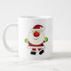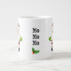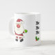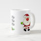 Mignonne tasse jumbo de vacances sport un Père Noël lunatique avec un gros nez rouge et des mitaines vert vif. Modifiez la légende du texte central "Ho Ho Ho". Vous avez le choix des styles.