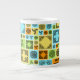 Une tasse de spécialité audacieuse à motifs avec une légende amusante pour un amateur de thé ou de café. Utilisez "Personnalisez ce modèle" pour modifier le texte "First Things First Things First Tea Break!", si vous le souhaitez. Occupé avec des carreaux décoratifs de différentes tailles et motifs variés. Des motifs noirs sur des arrière - plans orange, vert, bleu et jaune défraîchis. Tous les motifs ont été dessinés et dessinés par moi et sont inspirés par le design celtique et islamique.