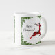 Cette tasse de Noël festive et colorée présente un renne volant en plaid rouge, encadré de branches à feuillage persistant et lumineuses. Parfait pour vos fêtes de Noël ! Personnalisez-le avec votre propre salutation de vacances!