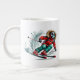 This jumbo size coffee mug is shown in white with a sports skier art print.