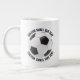 Football Soccer Ball image / picture / photo 20 oz. custom Giant Mug with personalized text (OPTIMIZED FOR SMALL SIZE TEXT AS DISPLAYED). The perfect gift for a football fan or soccer player. Customize upper and lower text on the front and the back of the mug by clicking 'Personalize this template'. Create your own birthday or Christmas gifts for a tennis lover or sports enthusiast and design your own Christmas stocking fillers or just a great customizable gift for yourself.