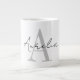 Élégante et élégante tasse à café géante XL avec votre nom et monogramme personnalisés dans un design de calligraphie en écriture manuscrite à la main dans minimaliste poussiéreux charbon et noir, ce design piloté par la typographie fait un grand cadeau pour les collègues, enseignants, entraîneurs, petites amies, épouses, filles, ou tout autre travail ou membre de la famille!