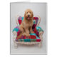 Un heureux Goldendoodle assis en contentement sur une chaise colorée à motifs. Ce mignon chiot brun semble être plus grand que la chaise mais jamais trop grand pour tenir dans vos bras. Avec sa langue qui sortait, face à la caméra sur cette photo, il faisait le compagnon parfait. Découvrez sur Zazzle beaucoup d'autres mignons chiots avec Getty Images.