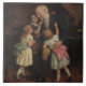 This design features a painting by the English Victorian-era painter Joseph Clark (1834–1926). It depicts a loving grandfather with his granddaughters. He is comforting them and talking kindly to them as they tell him about their day. He is smiling warmly at the young girls, who are wearing pretty dresses for a special occasion. The grandpa looks very happy to be sharing this beautiful moment with his family.