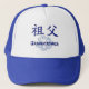 Grandfather in Chinese characters/symbols with a blue dragon design. Text is navy blue. Handsome China adoption gift for Grandpa.