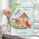 This hand-painted watercolor features a charming birdhouse adorned with a Happy Birthday banner, as a tufted titmouse and a cardinal stop by on a crisp January winter day. Soft seasonal details and gentle colors create a warm, thoughtful scene, making it a lovely birthday piece for Grandfather who celebrates in January.