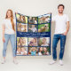 Grandma 12 Photo Collage Blue Fleece Blanket