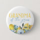 Grandma of the Groom Lemon Bridal Shower Pin on Button. Featuring beautiful elegant dusty slate blue watercolor flowers and sweet yellow lemons. Check out the other matching buttons in the collection for other important guests such as the maid of honour, mother of the groom, bridesmaid's and more!