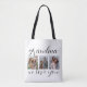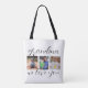 Modern typography, black and white personalized Grandma We Love You photo collage tote bag with 6 pictures.