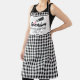 Cute grandmother apron featuring a black and white buffalo plaid background, a salt/pepper pot sprinkling red hearts, and the adorable quote "grandma seasons everything with love".