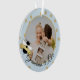 Announce your baby to be to the grandma to bee with this adorable "Grandma to Bee" photo ornament in blue, white and gold. Cute bumble bee ornament with random gold dots, editable background colour and photo. On the reverse side of ornament a last name and due date or edit to add your own special message to the grandma to be.
