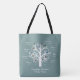Grandma's Baby Birds tote bag. Family Tree filled with red hearts. Personalize with grandchildren's names and birthdays. Smaller tree on back of tote, with a sweet "grandma saying" All text on this tote can be customized. Design as show has room for 8 names and birthdays. Message the designer if you need room for more names. Tote as shown is a pale Wedgewood blue. Select CUSTOMIZE and change background color (front and back of tote) for your own custom color.