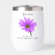Elevate your sipping experience with our thermal wine tumbler adorned with a vibrant purple flower design, bringing a touch of nature to every sip. Make it uniquely yours by personalizing it with the endearing title "Grandma" and a heartfelt message from her beloved grandkids or family.
