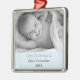 Grandma's 1st Christmas Personalized Name Year Photo Square Silver Metal Ornament. Christmas as a first time grandma - or first Christmas with a first or latest grandson - is one of life's greatest joys! This customized keepsake captures that first long-awaited holiday with new grandson as part of it. Modern hand lettered script calligrapht typography notes "First Christmas as (Grandson's name] Grandma" and easy personalization with the grandson's name, date and photo. Sample photo is black and white. Yours can be colour, if your favourite photo is in colour! Text is on a light baby blue background. Perfect gift for a first time grandma! And also for first Christmas with latest new grandson! Do you need this ornament, but for grandpa, grandparents or family members, or a granddaughter? Look for these personalized same-design ornaments in this store's collection, as well as its availability in additional kinds of ornaments. Step by Step Inspiration Series available exclusively on Zazzle at zazzle.com/store/KrisHarty, designed by international designer, Kris Harty. © 2022 Kris Harty Step By Step Inspiration