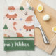 Celebrate the holiday season with this customizable kitchen tea towel that features a whimsical Santa Claus pattern accented with sleds, wrapped presents, Christmas trees, and candy canes. Add your own text, such as “Seasons Greetings from Grandma’s Kitchen,” to create a unique gift for a family member, friend, or anyone who loves to cook, bake, and entertain. This towel will add a touch of holiday cheer to any kitchen.