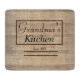 Rustic wood-like design. Featuring a handwritten script with personalized text with a decorative border: Grandma's Kitchen Since 19XX Cutting Board.