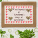 My original artwork, "What happens at Grandma's, stays at Grandma's" with heart shaped chocolate chip cookies, red gingham check border. Choose a different colour background if desired.