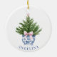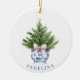 This Christmas tree has a blue and white Chinoiserie pot and a pink bow. You can personalize with a name.