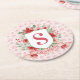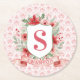 Grandmillennial Christmas Monogram Crest Round Paper Coaster
