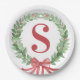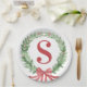 Grandmillennial Christmas Wreath Monogram Paper Plate