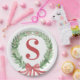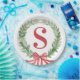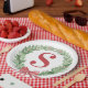 This Christmas plate design has a wreath with a red monogram initial. You can personalize with your initial.