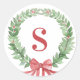 This Christmas sticker has a wreath with a red monogram initial. You can personalize with your initial.