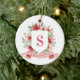 This Christmas ornament has a preppy grandmillennial design featuring a floral crest surrounded with berries with a monogram letter in the center.