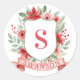 This Christmas sticker has a preppy grandmillennial design featuring a floral crest surrounded with berries with a monogram letter in the center.