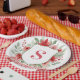 This Christmas paper plate design has a preppy grandmillennial design featuring a floral crest surrounded with berries with a monogram letter in the center.