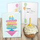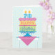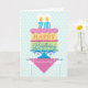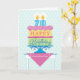 A birthday card for your 70 year old Grandmother. "Happy Birthday" is on each layer of the cake with pink decorative icing separating them. A subtle background of yellow and blue anchors the design. Bright colours and a bold graphic styling give this birthday wish a festive feel. You can also change "Grandmother" to personalize for any one.