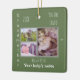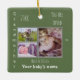 Photo ornament with text- Just choose the personalize option to enter your information and download photographs. Shown with a Olive Green background