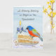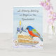 This charming watercolor and pen illustration features a Painted Bunting enjoying a slice of carrot cake, a nod to February’s National Carrot Cake Month, with a soft iris flower thoughtfully styled as a birthday candle holder. The iris, a traditional February birth flower, adds a meaningful seasonal detail. Together, these February-inspired elements create a warm, artistic birthday card perfect for celebrating someone born in this quiet winter month.