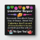 copyright 2018 Sharon Rhea Ford . How sweet to give to your Grandmother, Mother, Aunt, Sister, sweet lady in the neighbourhood who bakes a cake when you visit or are sick, you name it (as you always do on Zazzle)! Just change Grandmother if you want and change the name. I do believe it will be cherished, and I can tell you for a fact that our plaques are wonderful. They have a finish practically resembling our acrylic art. I know that since I have created several on my store for friends, family, and myself (you can see in my PLAQUE COLLECTION, BLESSED COLLECTION, Gifts for Mother and Father, etc. etc.). Thank you for being here with me. I hope you'll visit often, Sharon Rhea Ford, https://www.zazzle.com/store/sharonrhea