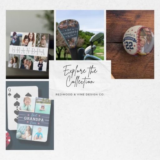 Create a sweet Father's Day or Grandparents Day gift for a beloved grandfather with this three photo collage vertical acrylic block. "Grandpa, we love you" appears along the left side, with three horizontal or landscape oriented photos at the right.