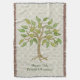 Lovely tan floral scalloped patterned grandparent's keepsake throw blanket, with graphics of a light brown tree, with big green leaves. Tan coloured text, on the leaves, has the grand children's names and is fully customizable, with 27 leaves for your text. Delete any extra text fields you don't need. Makes a beautiful gift idea to any grandparent.