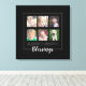This square wrapped canvas is a perfect heartfelt keepsake gift for a Grandparents. It features a 6 photo frame collage for pictures grandchildren on a black background. Trendy handwritten style text reads: "Blessings"