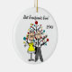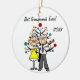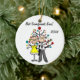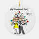 A pretty round ceramic keepsake Christmas holiday ornament features a stick figure elderly couple in front of a decorated Christmas tree with areas you can customize with text of your choice and the current year! This cute holiday keepsake ornament makes a great gift for grandparents!