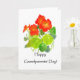 These orange and red nasturtiums, from a watercolour painting by Judy Adamson, make a bright and cheerful Grandparents' Day Greeting Card. The message, in black, says 'Happy Grandparents Day!' and the inside is left blank for your own message.