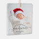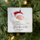 Help them celebrate their first grandchild with this beautiful modern keepsake ornament. The off-black text reads "Our first Christmas as grandparents," with the word "grandparents" in elegant handwriting script with flourishes before and after. Easily replace the sample image with your favorite photo of the new baby, and add his or her name and the year. A white gradient filter helps make the text pop.