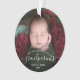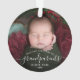 Help them celebrate their first grandchild with this beautiful modern keepsake ornament. The white text reads "Our first Christmas as grandparents," with the word "grandparents" in elegant handwriting script with flourishes before and after. Easily replace the sample image with your favorite photo of the new baby, and add his or her name and the year.