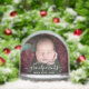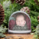 Help them celebrate their first grandchild with this beautiful modern keepsake snow globe. The white text reads "Our first Christmas as grandparents," with the word "grandparents" in elegant handwriting script with flourishes before and after. Easily replace the sample image with your favorite photo of the new baby, and add his or her name and the year.
