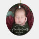 Help them celebrate their first grandchild with this beautiful modern keepsake ornament. The white text reads "Our first Christmas as grandparents," with the word "grandparents" in elegant handwriting script with flourishes before and after. Easily replace the sample image with your favorite photo of the new baby, and add his or her name and the year.