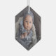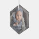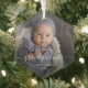 Help them celebrate the arrival of their first grandchild with this beautiful modern keepsake ornament. The white text reads "Our first Christmas as grandparents," with the word "grandparents" in elegant handwriting script with flourishes before and after. Replace the sample image with your favorite photo of the baby, and add his or her name and the year. A white gradient filter helps make the text pop.