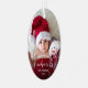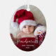 Help them celebrate their first grandchild with this beautiful modern keepsake ornament. The white text reads "Our first Christmas as grandparents," with the word "grandparents" in elegant handwriting script with flourishes before and after. Easily replace the sample image with your favourite photo of the new baby, and add his or her name and the year. A dark gradient filter helps make the text pop.