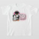 On est grand, on est petit, mais tous les deux sont également mignons ! Caractéristiques de conception ce un pingouin heureux de fille étreignant son nouvel enfant de mêmes parents.