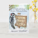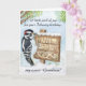 Playful yet heartfelt, this birthday card for a grandson highlights a hand-painted Downy Woodpecker busily pecking out a wooden Happy Birthday sign adorned with a small heart. The watercolor and pen artwork brings a fun, nature-loving spirit to his special day.